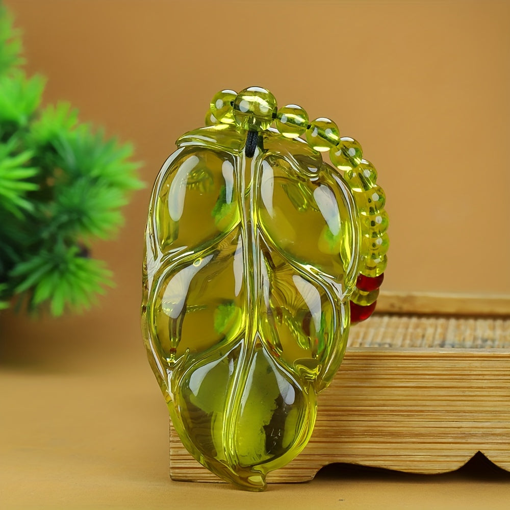 In cultural symbolism, leaves represent fertility, renewal, and the connection between heaven and earth. The amber's warm golden hue enhances its protective qualities, making this pendant ideal for daily wear or special ceremonies.