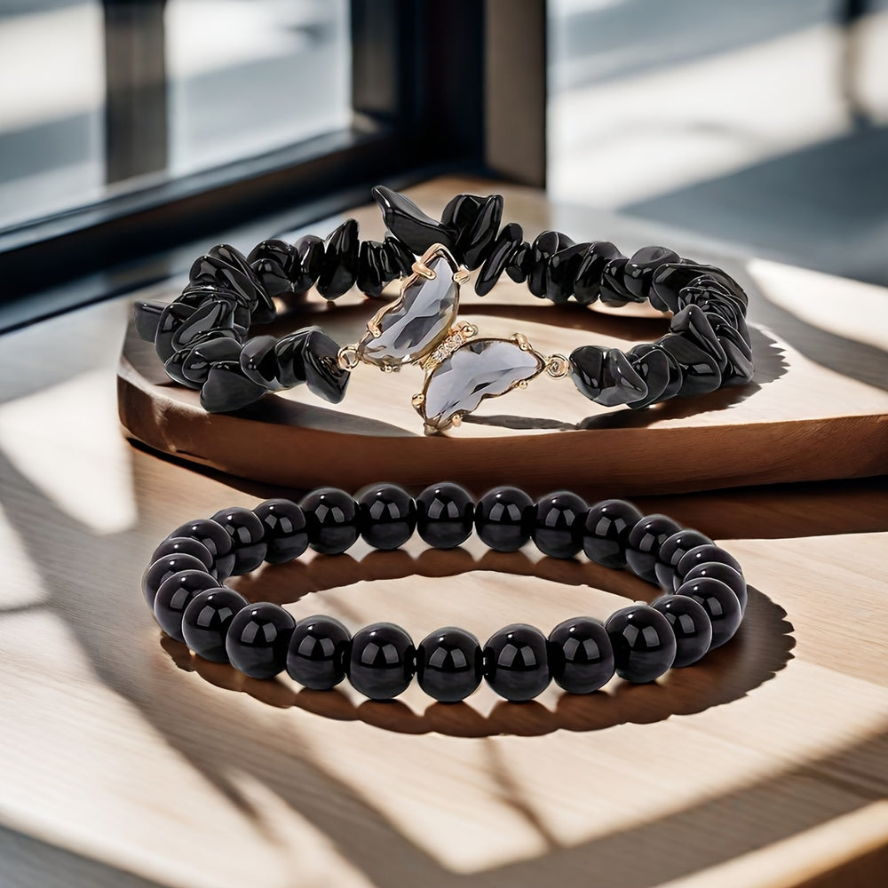 The butterfly charm symbolizes growth and renewal, while the amethyst and obsidian beads provide spiritual connection and energy protection. This makes the bracelet ideal for daily wear and special occasions alike.