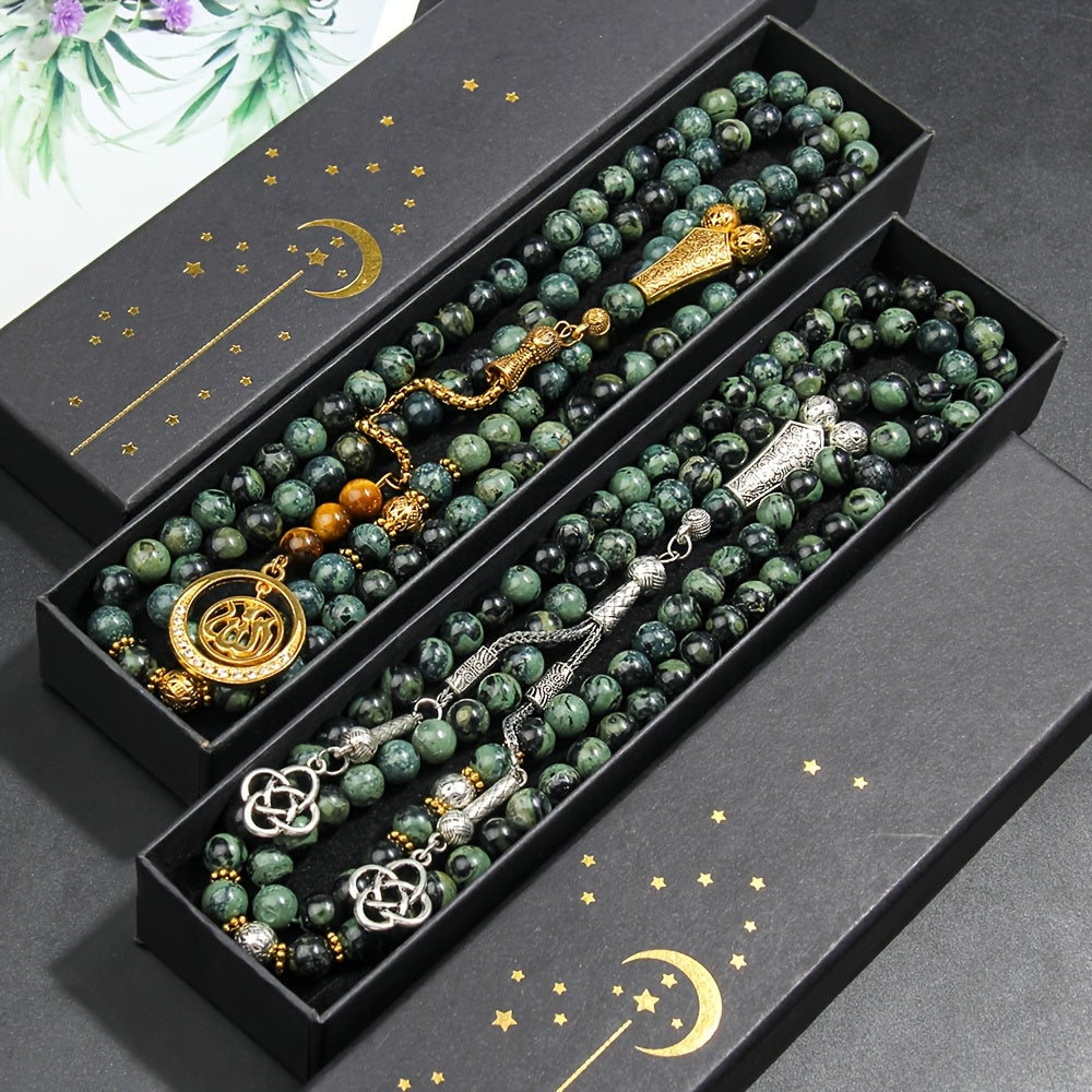 This tasbih is more than a counting device; it is a tactile meditation tool that engages multiple senses in worship. The rhythmic movement of beads through the fingers creates a physical rhythm that harmonizes with verbal recitation, while the natural stone's cool touch serves as a constant reminder of the tranquility found in spiritual practice. Whether used during formal prayers, personal meditation, or moments of quiet reflection, this tasbih supports a deeper, more focused connection with the Divine.