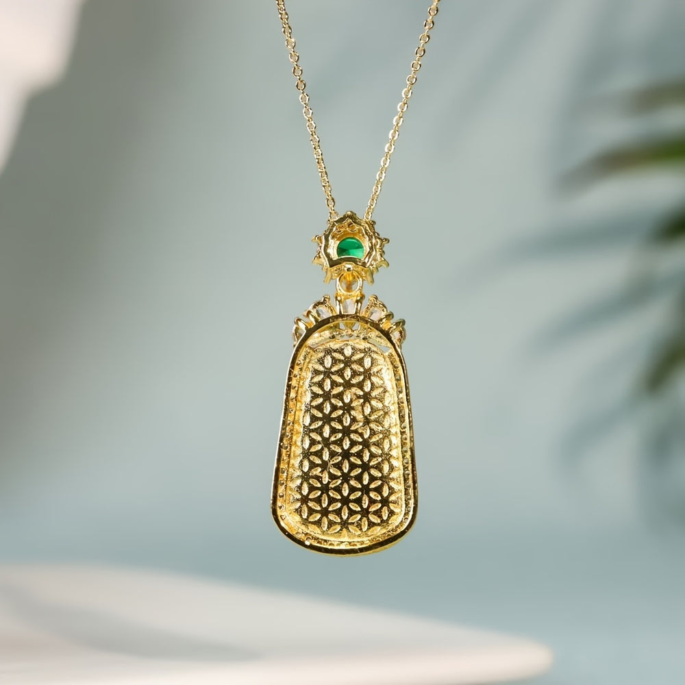 Summary: This pendant combines natural beauty with spiritual symbolism, creating a powerful tool for enhancing mindfulness, intention-setting, and overall well-being. The combination of natural jade and golden accents reflects artistic excellence and cultural significance, making it both a fashion statement and a meaningful piece of jewelry for everyday wear.