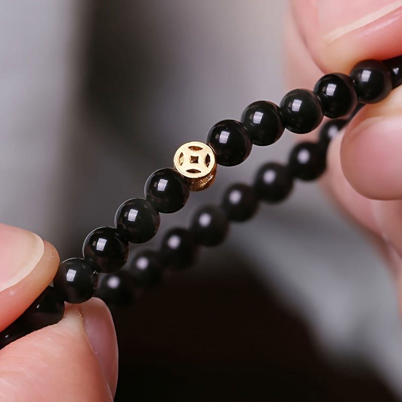 “The combination of obsidian's protective energy and gold's prosperity symbolism makes this bracelet perfect for daily spiritual protection and wealth attraction.”