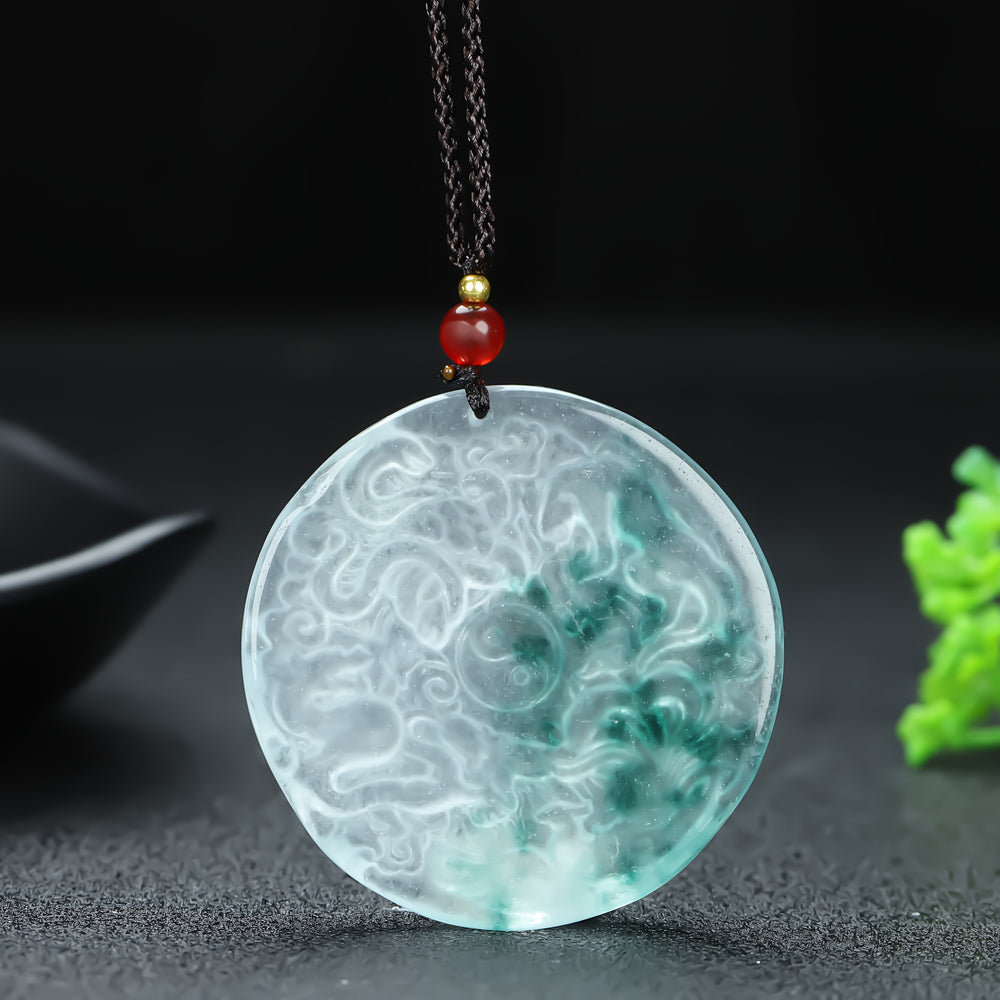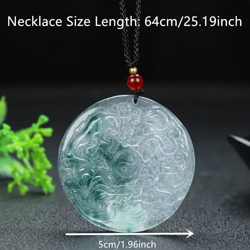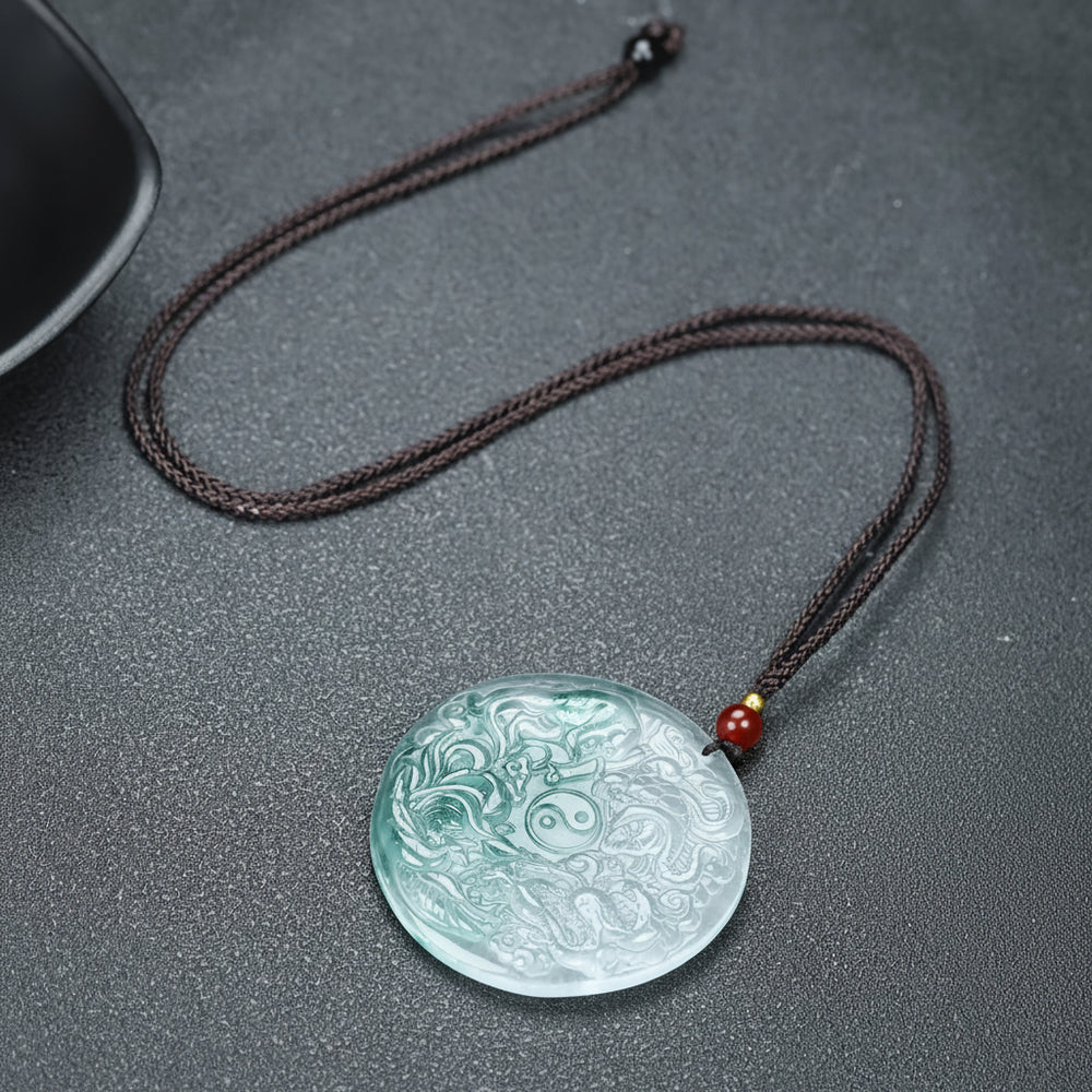 The Natural Quartz Dragon Pendant is a breathtaking convergence of geological wonder and mythical imagination. Carved from a single piece of genuine natural quartz crystal, this exquisite round pendant features a three-dimensional ice dragon emerging from frozen depths, its scales, wings, and majestic form captured with astonishing detail. The translucent quality of the quartz creates a mesmerizing play of light, as if the dragon is formed from captured moonlight and glacial ice, suspended from a dark braided rope chain that evokes ancient mystical bonds.