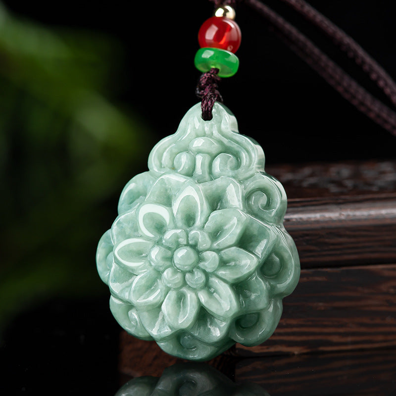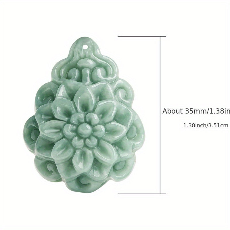 This natural rose quartz pendant features a delicate rose flower carving in soft green hues. The elegant design combines harmony energy with floral symbolism, making it perfect for daily wear or special occasions.
