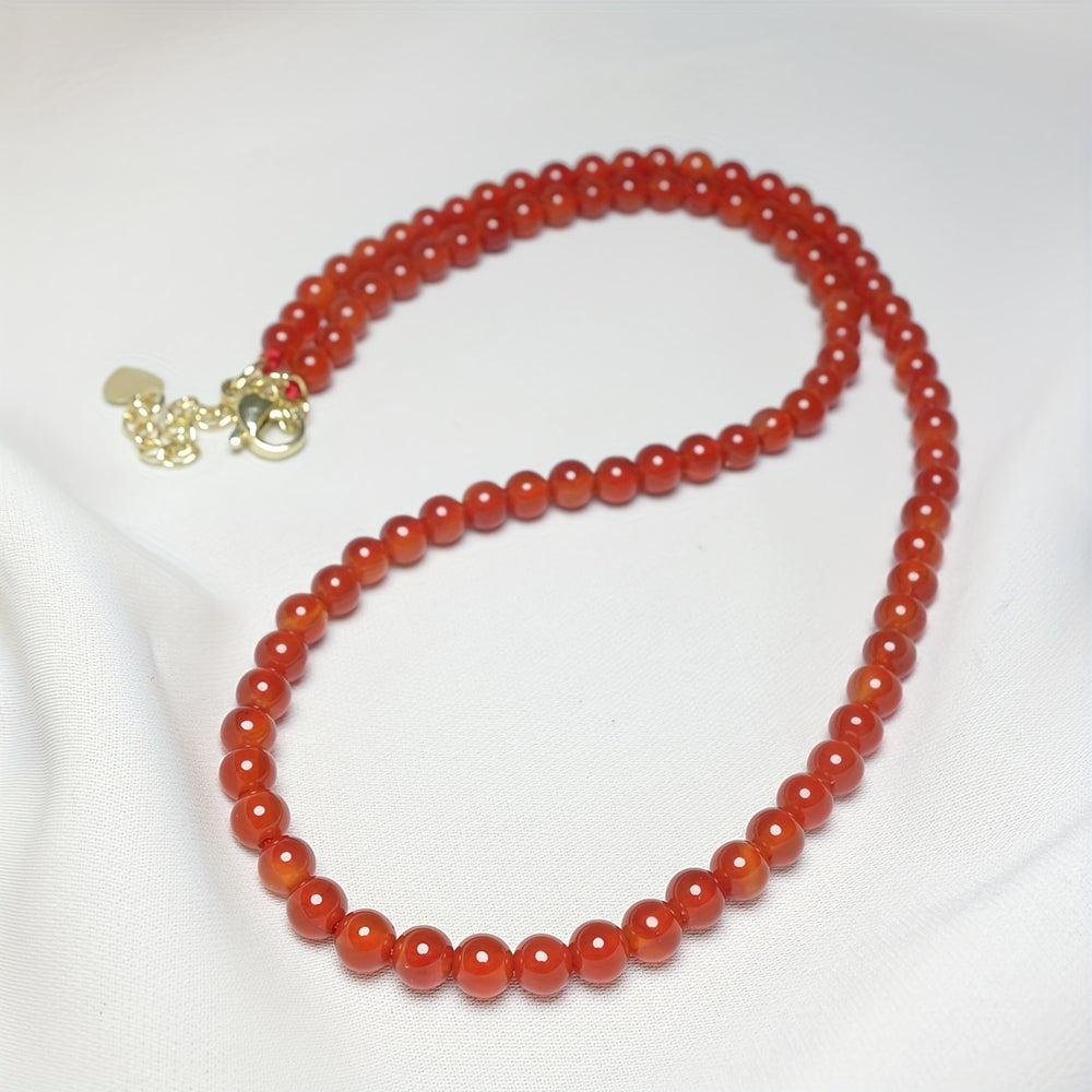 This natural red stone necklace features a clavicle chain design with vibrant red beads and golden accents. The 43cm length ensures comfortable wear for both men and women, making it perfect for beach parties, dance events, and holiday celebrations.