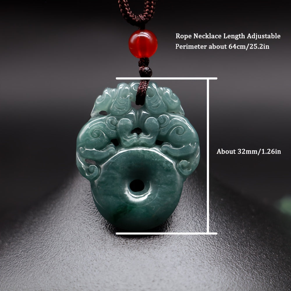 The patterns represent good fortune and harmony in traditional symbolism, while the green jade symbolizes natural harmony and positive energy flow. Together, they create a powerful symbol of prosperity.