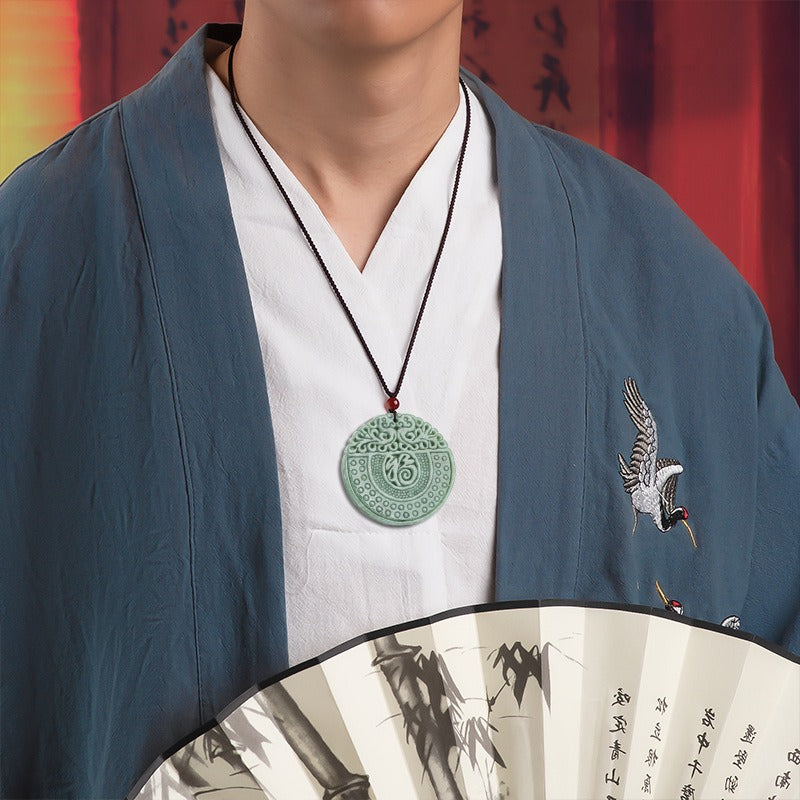 The combination of natural stone and rope chain creates a durable yet lightweight accessory that's perfect for everyday wear. The pendant's unique design reflects artistic excellence and cultural significance, making it both a fashion statement and a meaningful piece of jewelry.