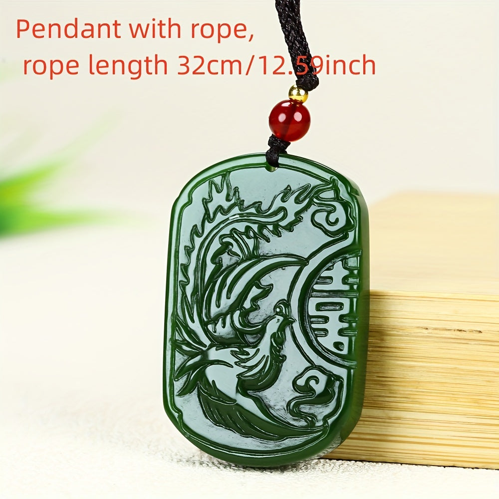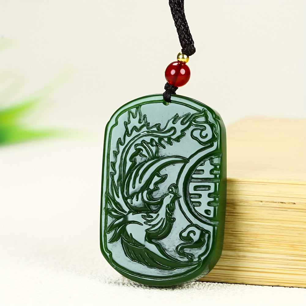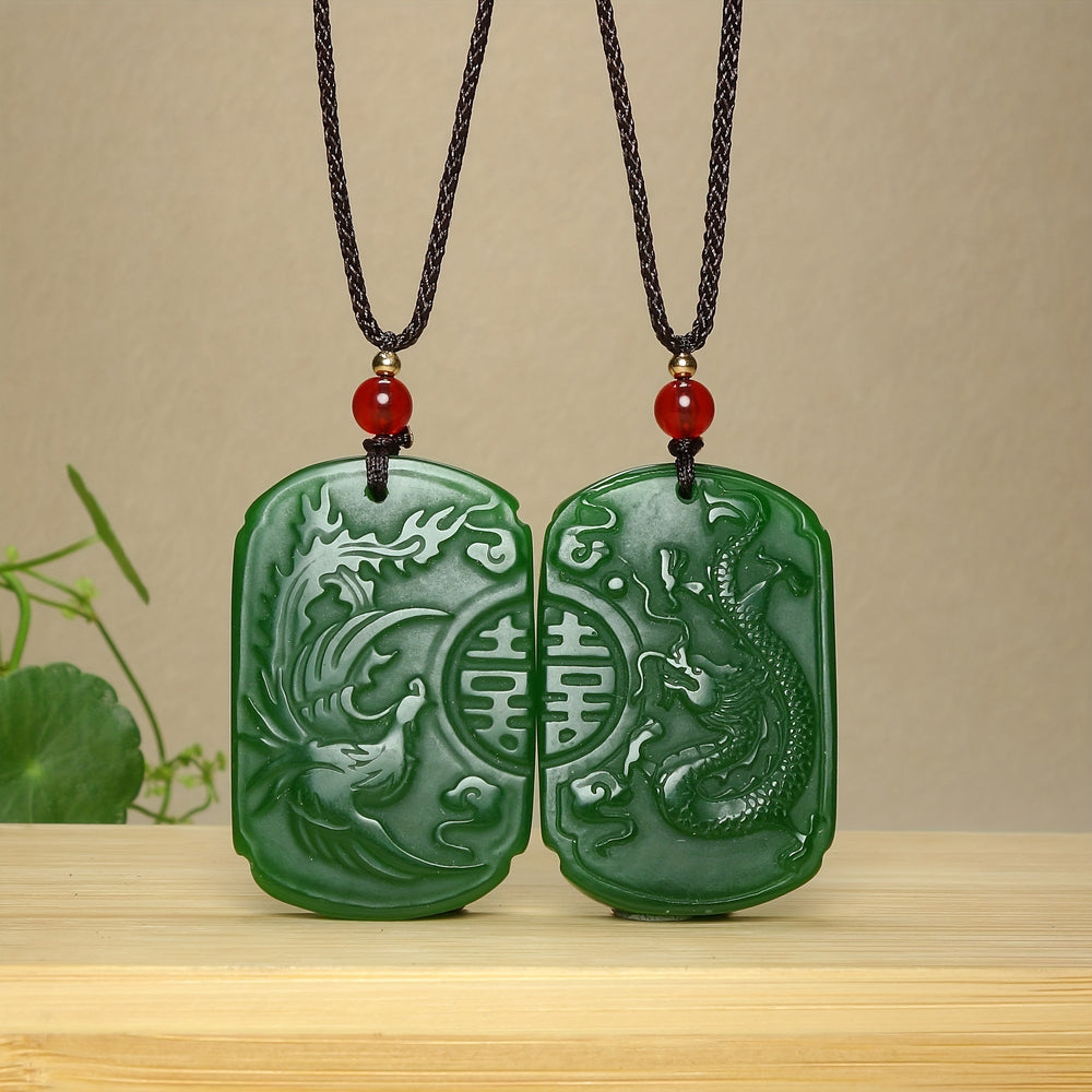 This natural stone dragon and phoenix pendant combines harmony and prosperity energy with elegant design. The green stone creates a calming presence perfect for daily wear or gifting.