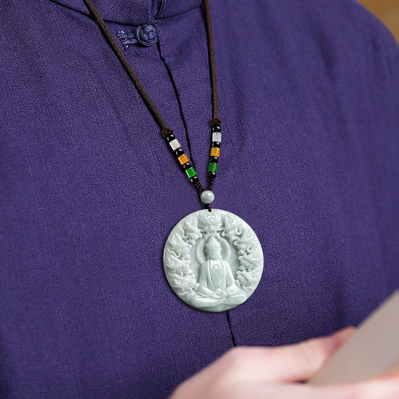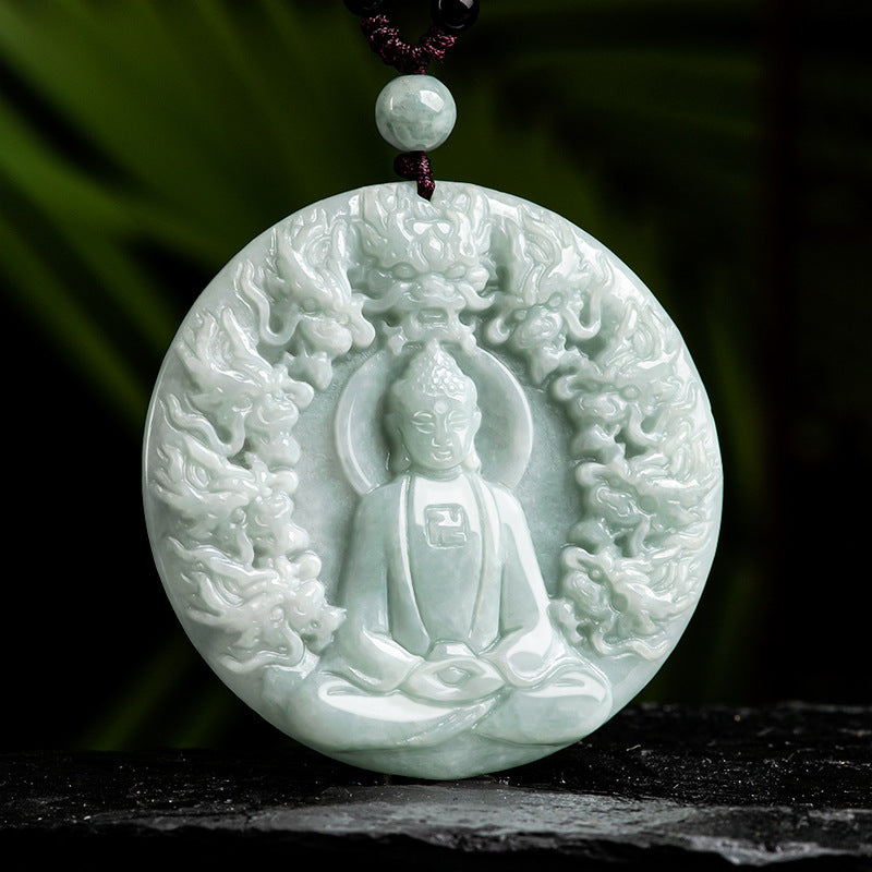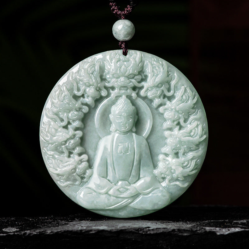 The dragon motif design represents protection and prosperity in traditional symbolism, while the jade symbolizes natural harmony and positive energy flow. Together, they create a powerful symbol of spiritual connection.