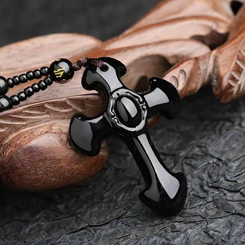 The cross is a universal symbol of faith, sacrifice, and spiritual connection. When crafted from obsidian, it gains additional properties of protection and grounding. Obsidian is known as the "warrior stone," offering strength and resilience while helping to uncover and release negative patterns.