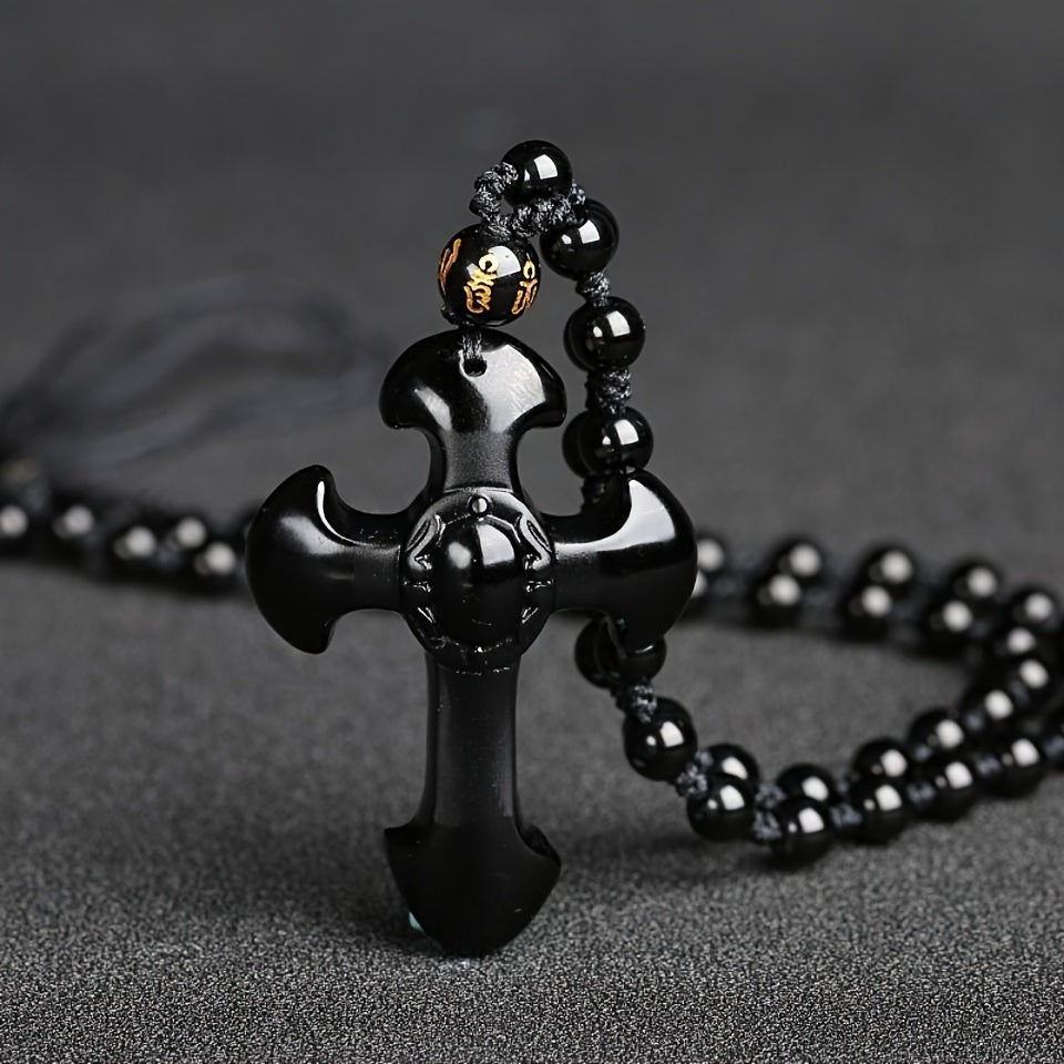 Summary: This necklace combines the protective power of obsidian with the spiritual symbolism of the cross to create a potent talisman for protection, grounding, and faith. The black color and cross design work together to shield the wearer from negativity while enhancing spiritual connection and inner strength, making it an ideal accessory for those seeking both style and spiritual harmony.