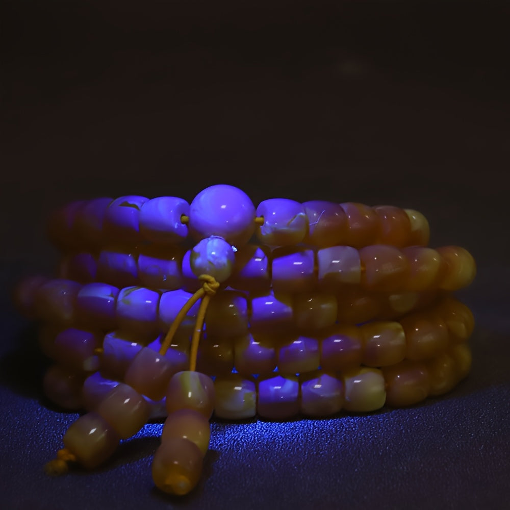 The necklace's rich golden-yellow hue and classic bead shape capture the essence of stability and wisdom. Strung on a durable cord, this piece combines vintage charm with powerful energetic properties, making it a unique and cherished addition to any jewelry collection.