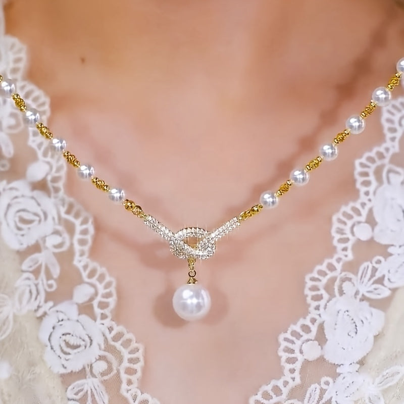 This exquisite necklace features a lustrous purple pearl pendant suspended from a gold-tone knot charm adorned with sparkling accents. The design combines elegance with symbolic meaning, creating a powerful talisman for attracting harmony, luck, and positive relationships. The pearl represents purity and emotional balance, while the intricate knot symbolizes eternal connections and good fortune.