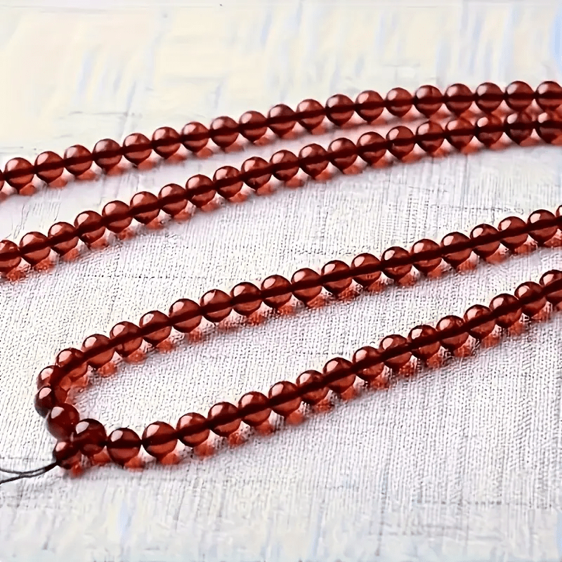 This natural amber beads 108-bead set features deep red hue with smooth texture, perfect for spiritual energy enhancement. The 64cm length allows versatile wear as both bracelet and necklace.