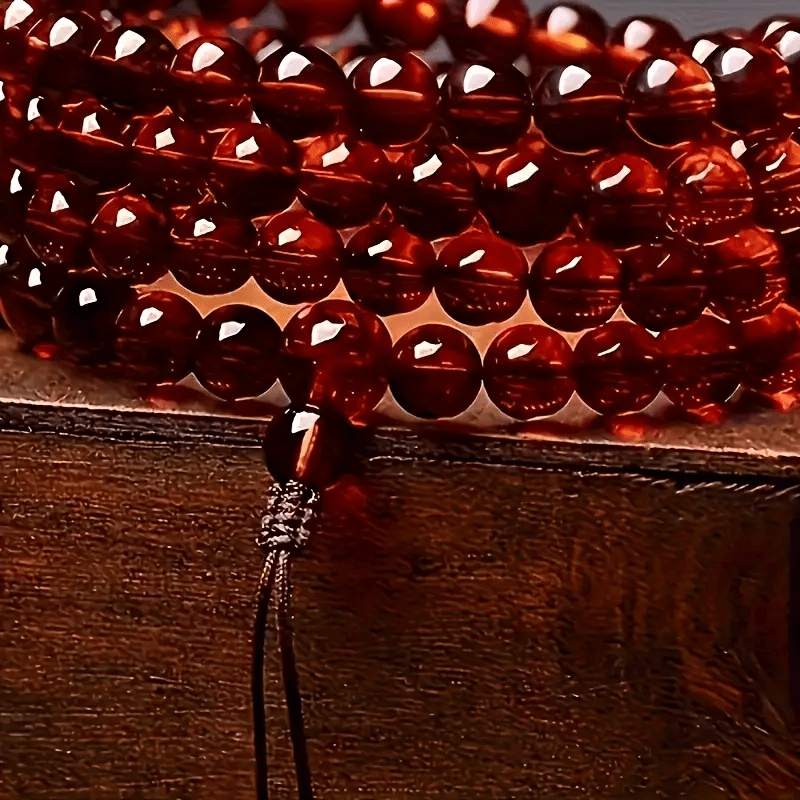 The natural amber beads represent healing energy, emotional balance, and positive vibrations. The deep red hue symbolizes passion and energy, while the 108-bead count supports traditional meditation practices for enhanced spiritual growth.