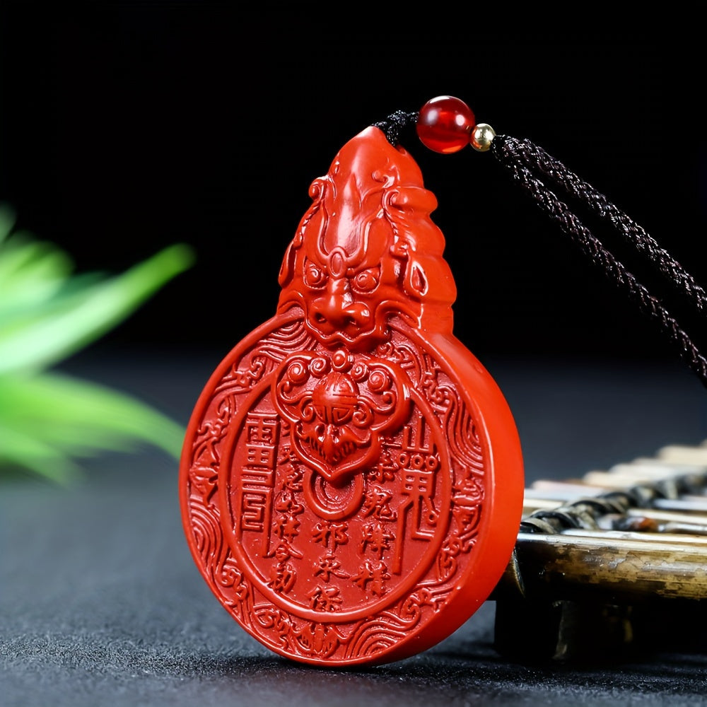 This powerful Protective Cinnabar Beast Head Pendant is a must-have talisman for spiritual defense and personal empowerment. Meticulously carved from natural cinnabar, its vibrant red color and potent energy make it a formidable shield against negativity. Designed for men, this necklace combines ancient symbolism with modern style, serving as both a fashion statement and a constant source of protective energy.