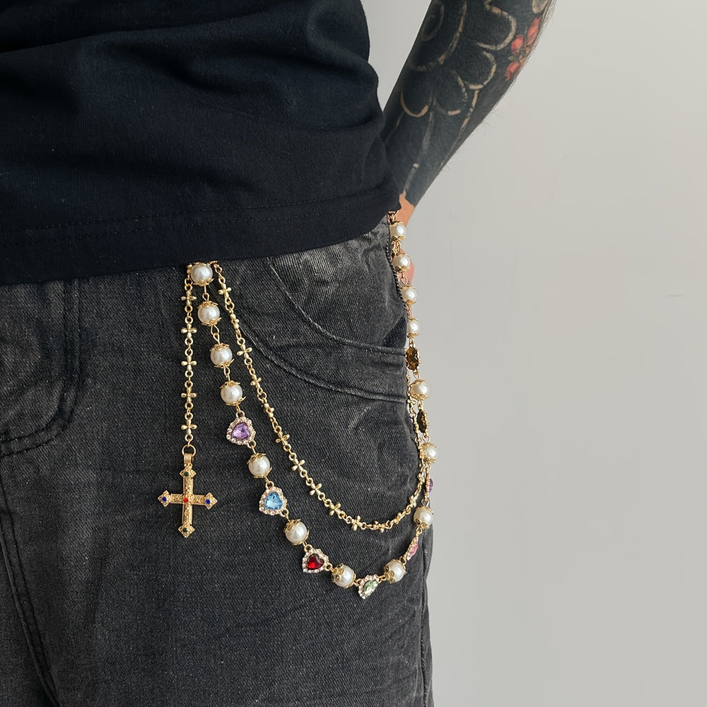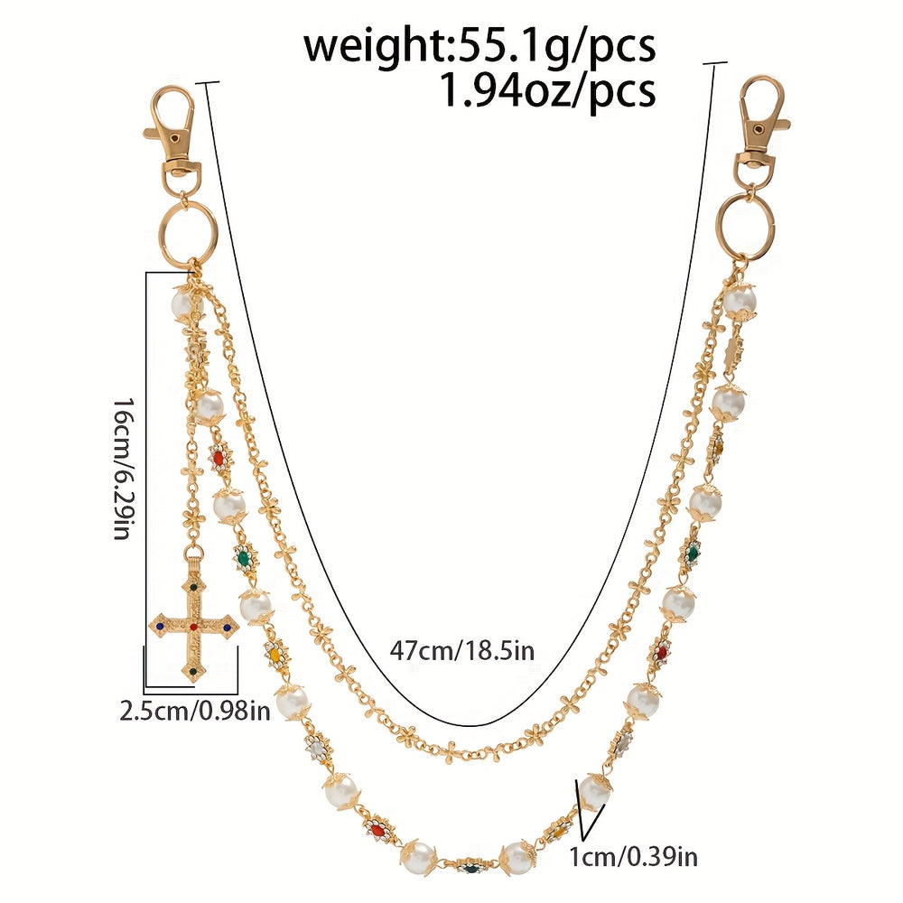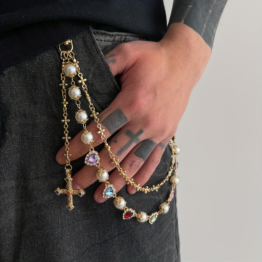 This Punk-Style Cross Pendant Jeans Chain is a bold statement piece designed for the fashion-forward individual. Featuring a long, multi-layered chain with a cross pendant and colorful gem accents, this piece adds an edgy touch to any outfit while serving as a protective talisman and confidence booster. Perfect for hip-hop, rock, or punk styles, and makes an excellent gift for men seeking both style and energetic protection.