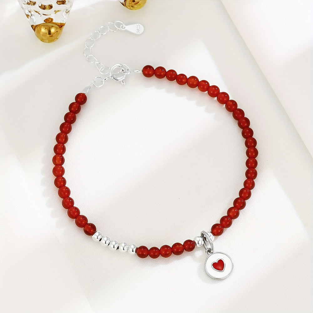 This pure silvery love red agate heart bracelet combines natural gemstone energy with heart symbolism. The vibrant red agate beads symbolize vitality and protection, while the silver heart charm represents love and emotional balance.