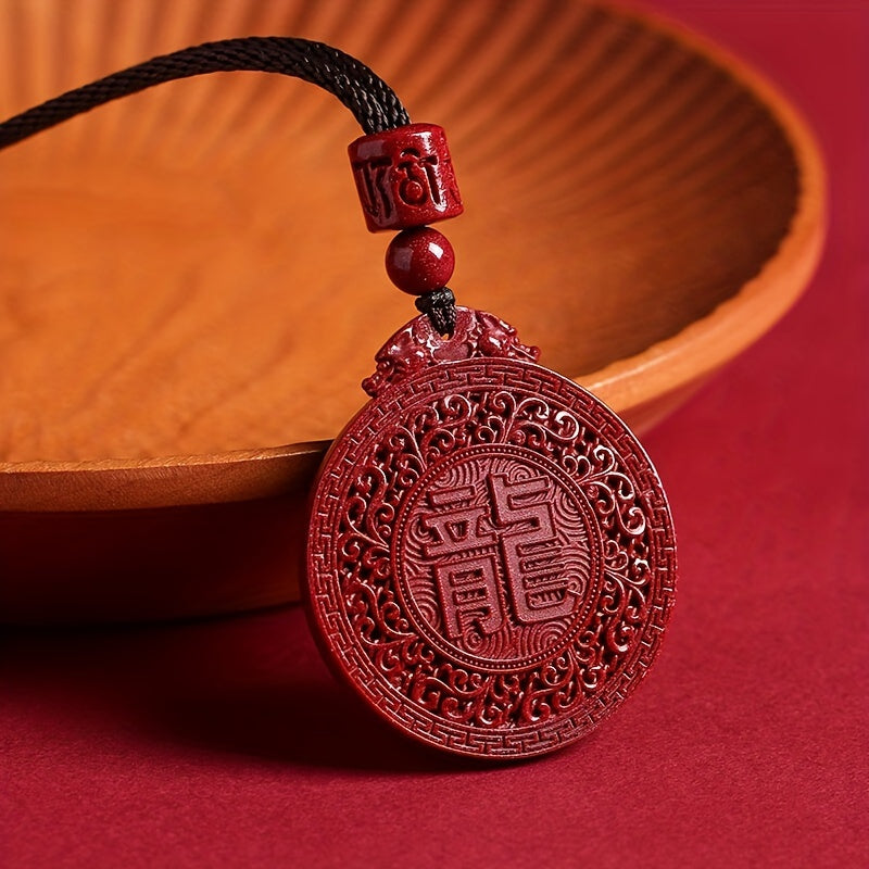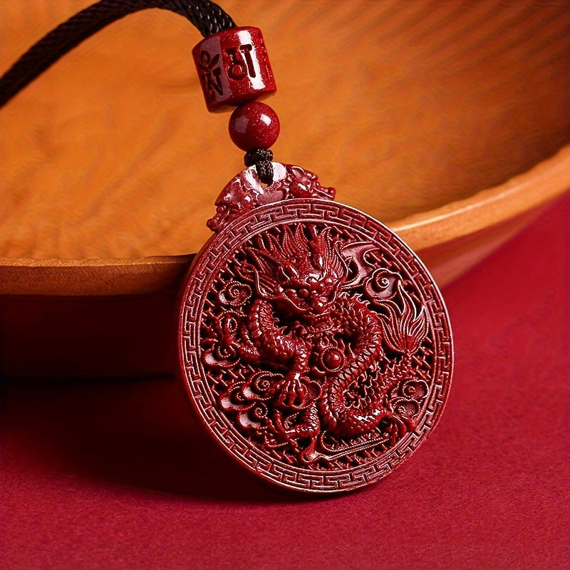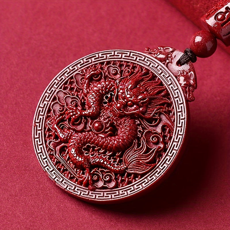 The zodiac dragon design represents power, prosperity, and good fortune in Chinese culture, while the cinnabar's natural red hue symbolizes fire energy for vitality and protection. This makes it both a fashionable accessory and a meaningful lucky amulet for good fortune.