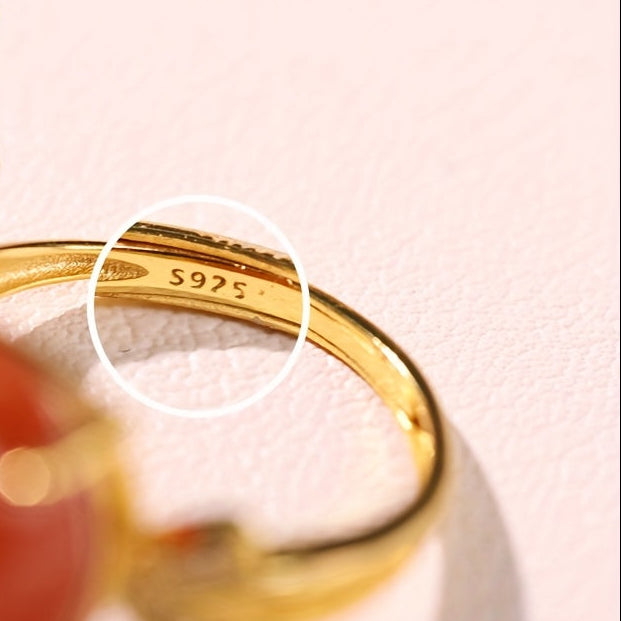 This S925 silver ring set features natural South Red Agate stones in vibrant red, set in durable silver with golden accents. The combination of earthy elegance and symbolic design creates a sophisticated look perfect for daily wear or special occasions.