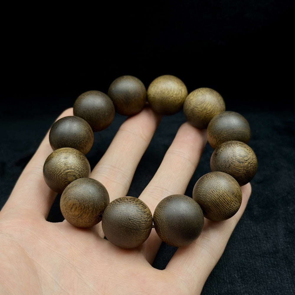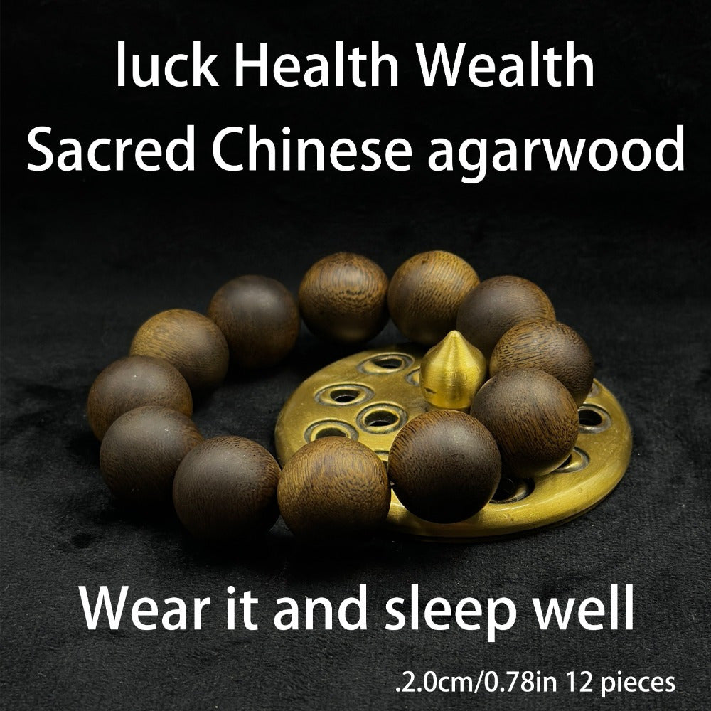 This sacred agarwood mala beads feature 12 deep brown beads with natural wood grain, designed to attract spiritual wealth and harmonious energy. Perfect for daily wear or meditation, these beads promote peaceful sleep and positive energy flow.