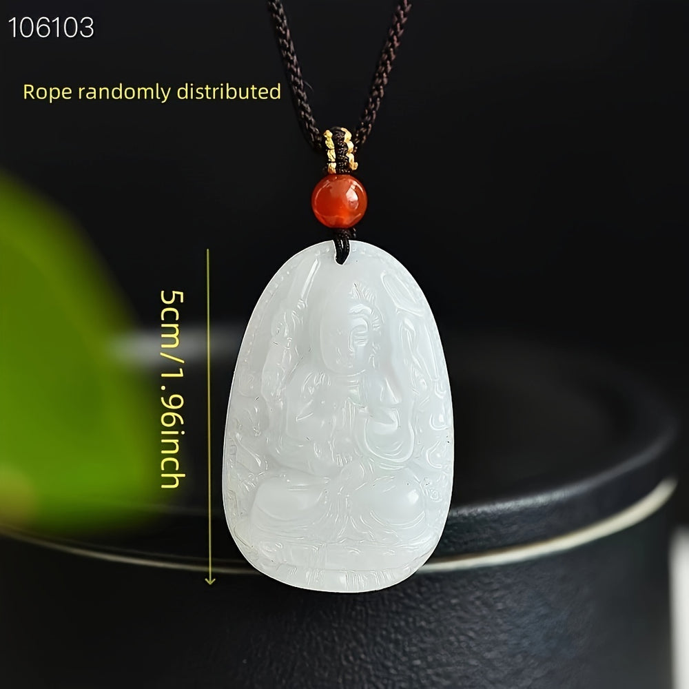 Suspended from a durable, adjustable black cord with a single, vibrant red bead accent, this necklace is designed for both men and women. The Eight Immortals are revered for their ability to bestow blessings in various aspects of life, including longevity, prosperity, and health. This pendant serves as a constant source of spiritual support and a beautiful reminder of the power of faith and virtue, making it a meaningful accessory for daily wear or special occasions.