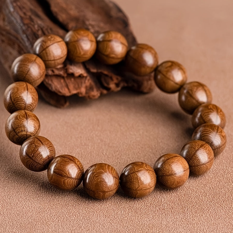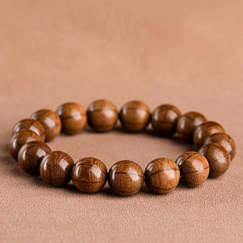 The deep brown color represents stability, grounding, and connection to nature, ideal for natural energy jewelry. The visible wood grain adds a touch of organic beauty and uniqueness to each bead.