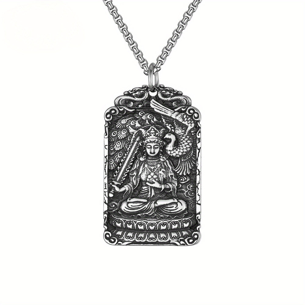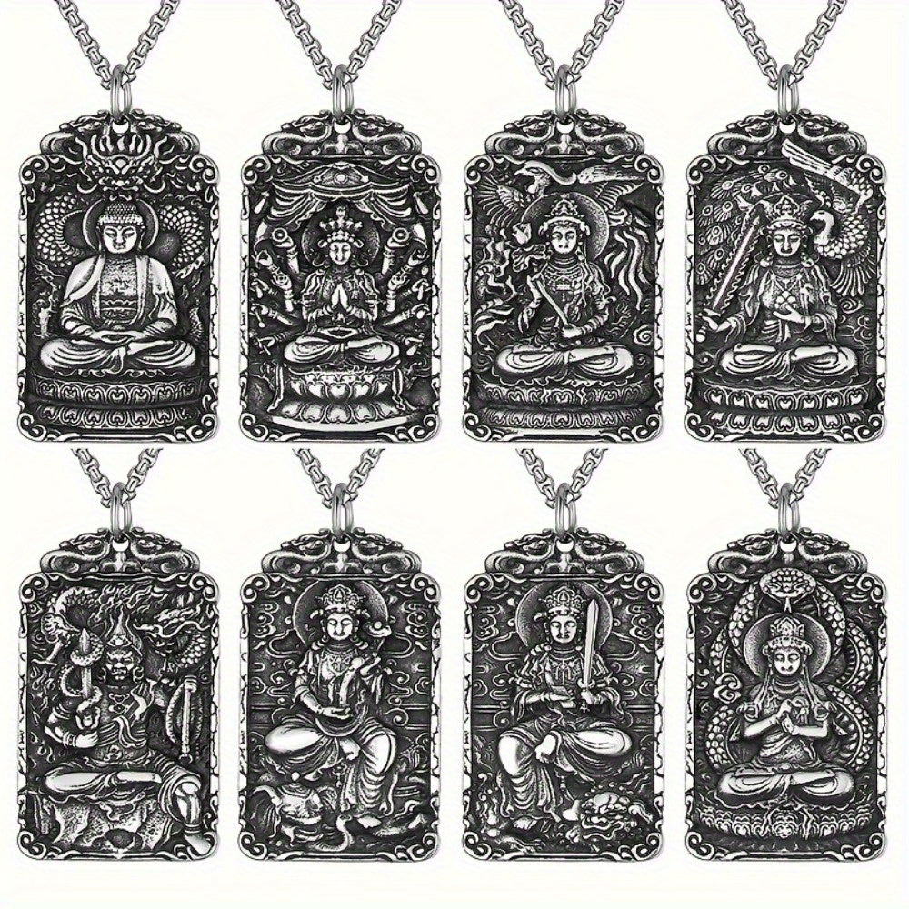 This 316L stainless steel pendant features the Eight Guardian Gods Buddha design with intricate phoenix motifs. The zodiac pendant necklace combines spiritual symbolism with elegant craftsmanship, making it perfect for festival worship jewelry or meaningful gifts.