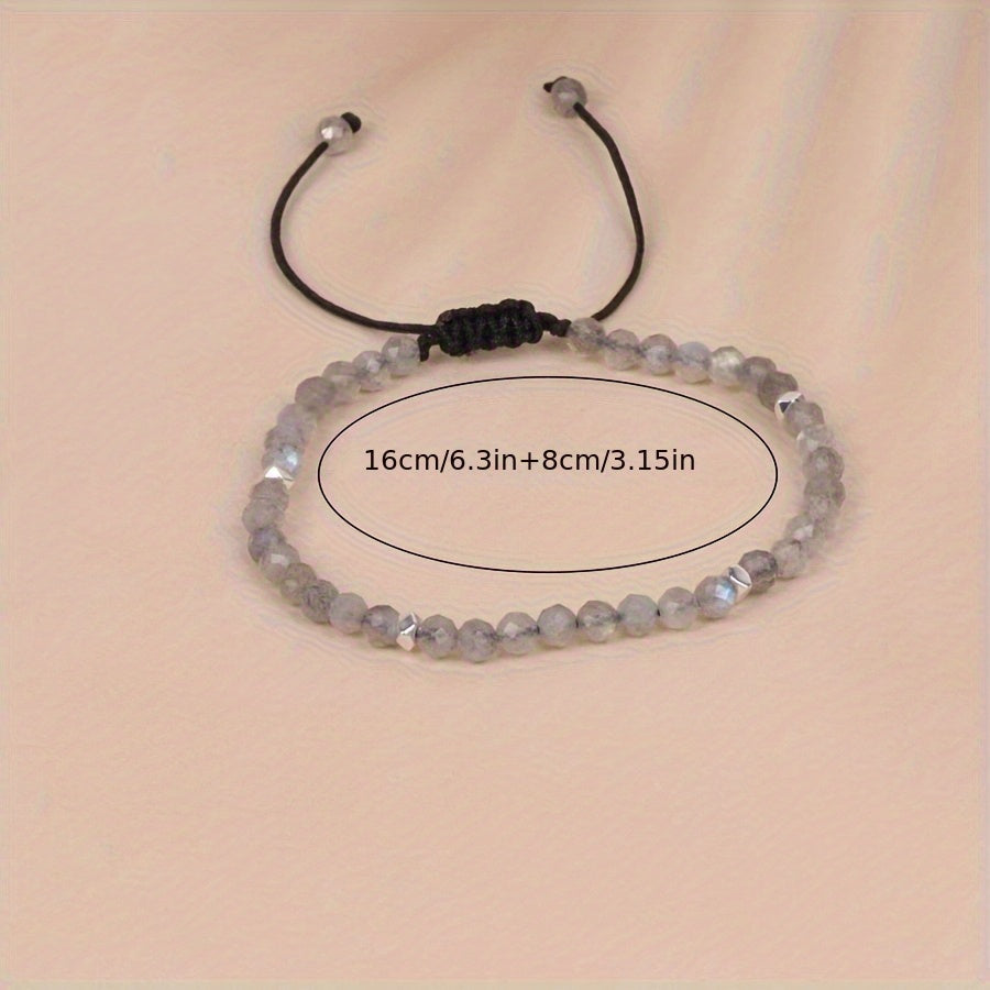 This boho elegant bracelet features 4mm faceted moonstone beads in a vintage boho style. Perfect for daily wear, it combines spiritual energy with timeless elegance. The adjustable design ensures comfortable fit for all wrist sizes.