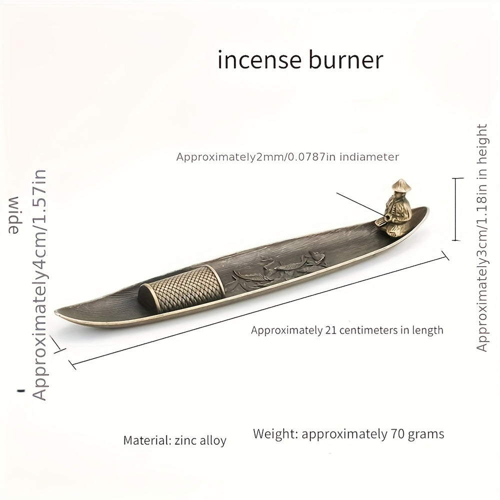 This traditional metal incense burner features an intricate dragon design on a boat-shaped base. The bronze finish creates a warm, antique aesthetic perfect for home decor, meditation, or holiday celebrations.