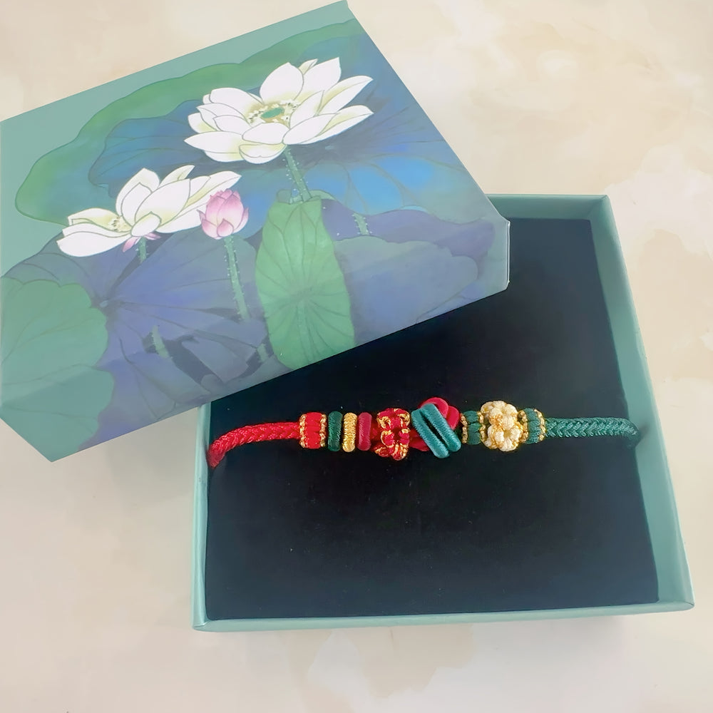 The decorative beads enhance the bracelet's symbolic meaning, attracting love, good fortune, and smooth relationships. The adjustable design allows for customizable fit, making it suitable for various occasions and settings.