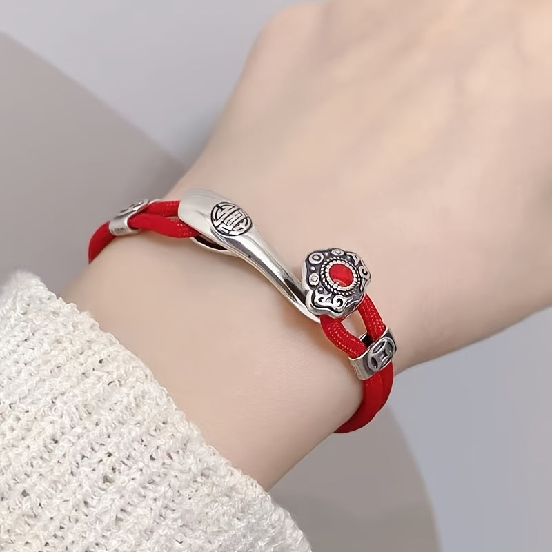 This handcrafted unisex bracelet features a **vibrant red cord**—a cultural emblem of luck and vitality—paired with an intricately designed **antique silver-tone alloy pendant**. A touch of elegance and spiritual significance, ideal for gifting and daily wear.