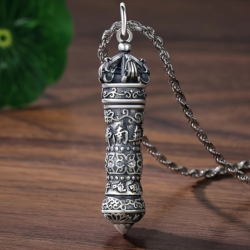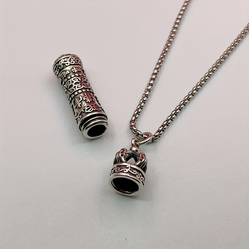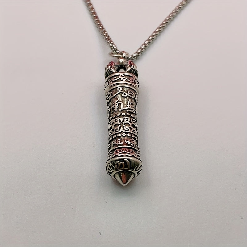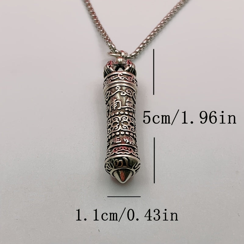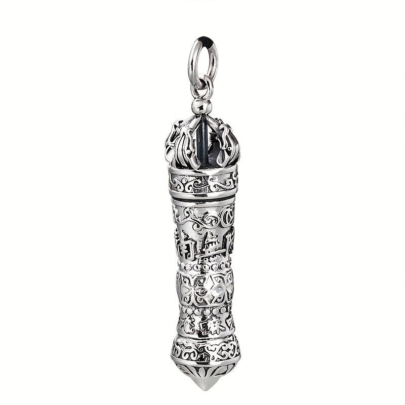This vajra pendant necklace features a unique rotating opening design with a hidden scripture pill ash box. Crafted from premium 316L stainless steel with metallic silver finish and deep red accents, it combines spiritual symbolism with elegant craftsmanship.