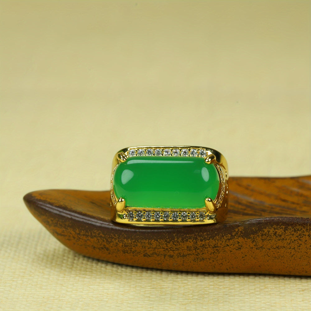 Embrace bold, timeless style and potent energetic support with our Men's Vintage Agate Statement Ring. This exquisite piece features a stunning, square-shaped emperor green agate stone, celebrated for its grounding and balancing properties. Set in a polished gold-toned alloy and designed with an adjustable open band, it offers both a chic, masculine design and a comfortable fit for any finger size.