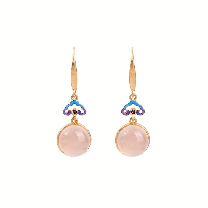 Together, these elements create a harmonious balance of earthly love (pink glass), spiritual protection (clouds), and divine prosperity (gold), making these earrings powerful tools for enhancing harmony practice while maintaining elegant style.