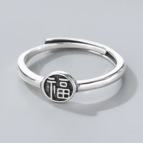 The 'Fu' character is a powerful symbol of good fortune and prosperity in Chinese culture. Combined with minimalist design, this ring creates a perfect balance of traditional symbolism and modern style.