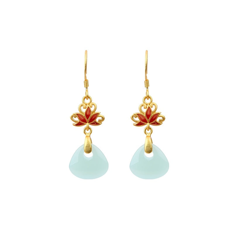 Together, these elements create a harmonious balance of earthly prosperity (gold), emotional healing (blue/green), and spiritual growth (lotus), making these earrings powerful tools for enhancing spiritual balance practice while maintaining elegant style.