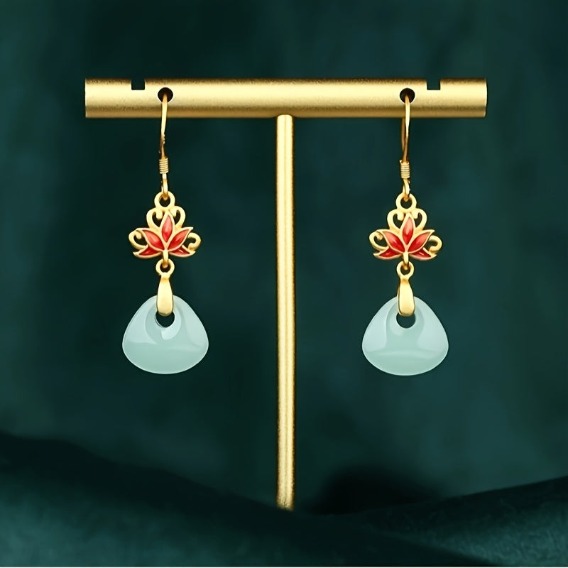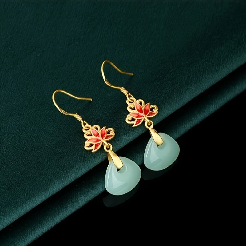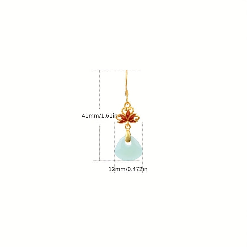These vintage lotus earrings feature 24K golden-plated copper lotus charms with synthetic glass mosaic accents. The 41mm length and water-drop pendant create an elegant look perfect for daily wear or special occasions.