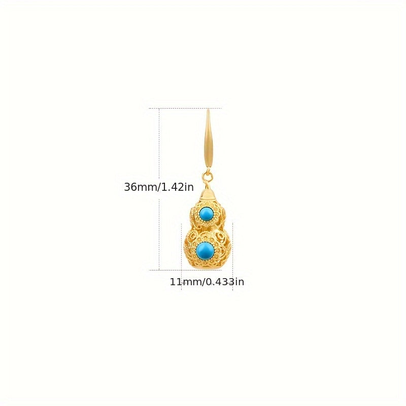 These vintage golden gourd earrings feature 24K gold-plated gourd charms with turquoise stones. The 36mm length and gourd shape create an elegant look perfect for evening wear or everyday style.