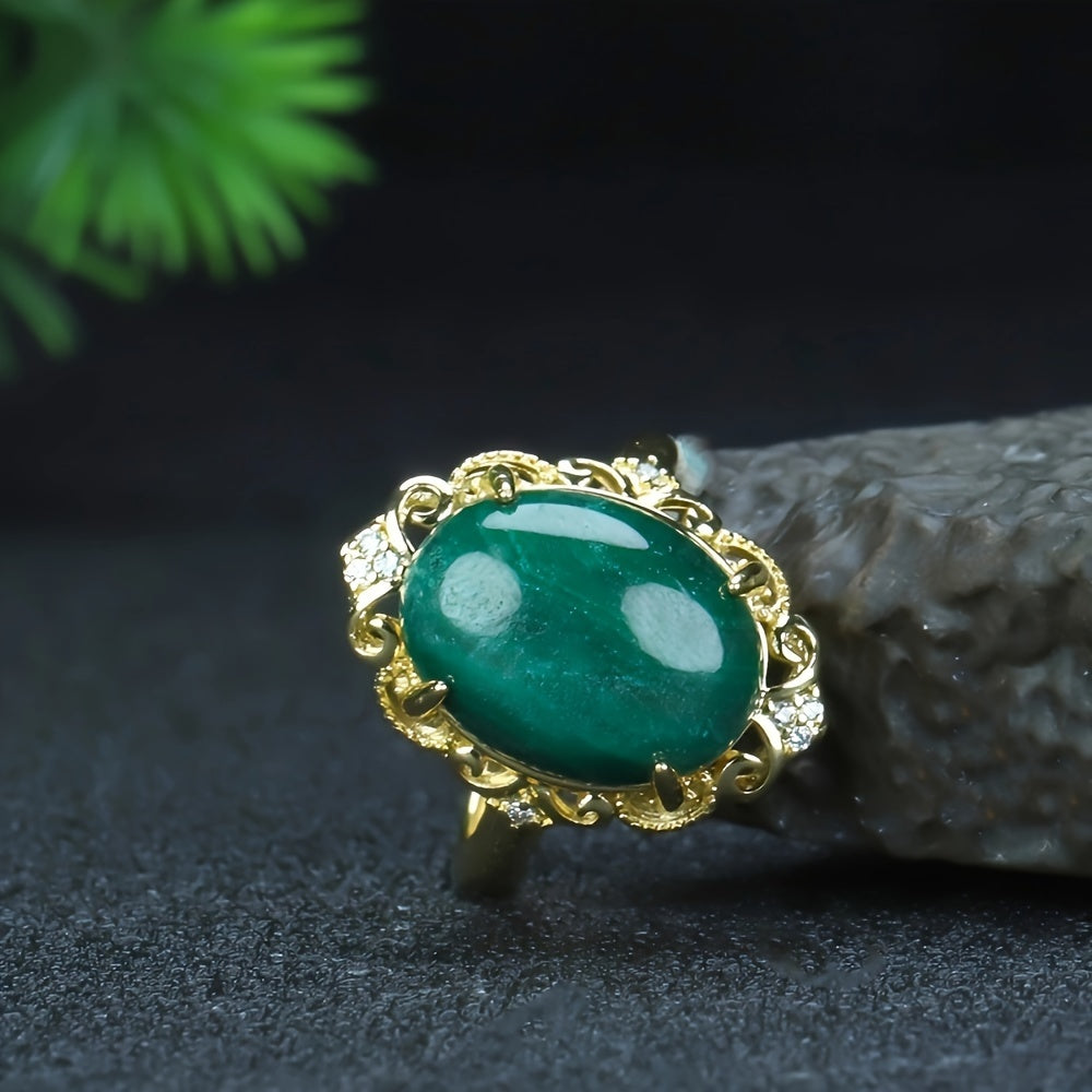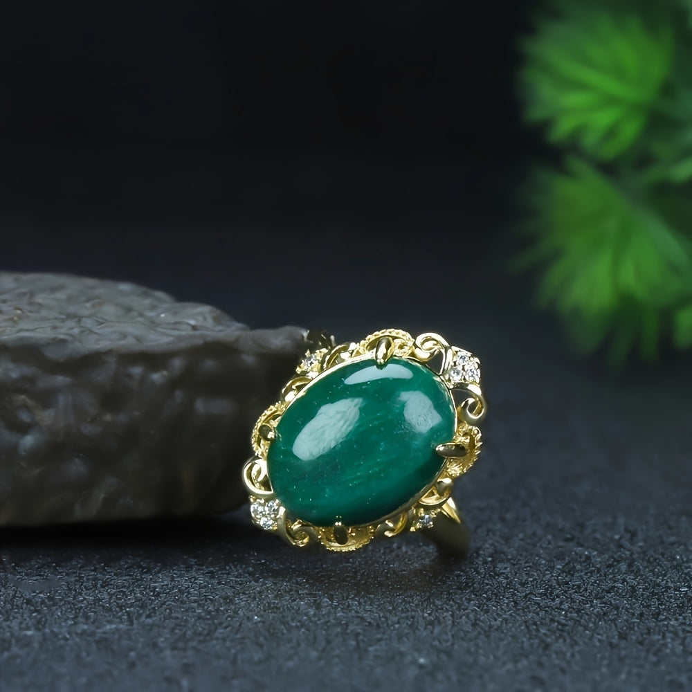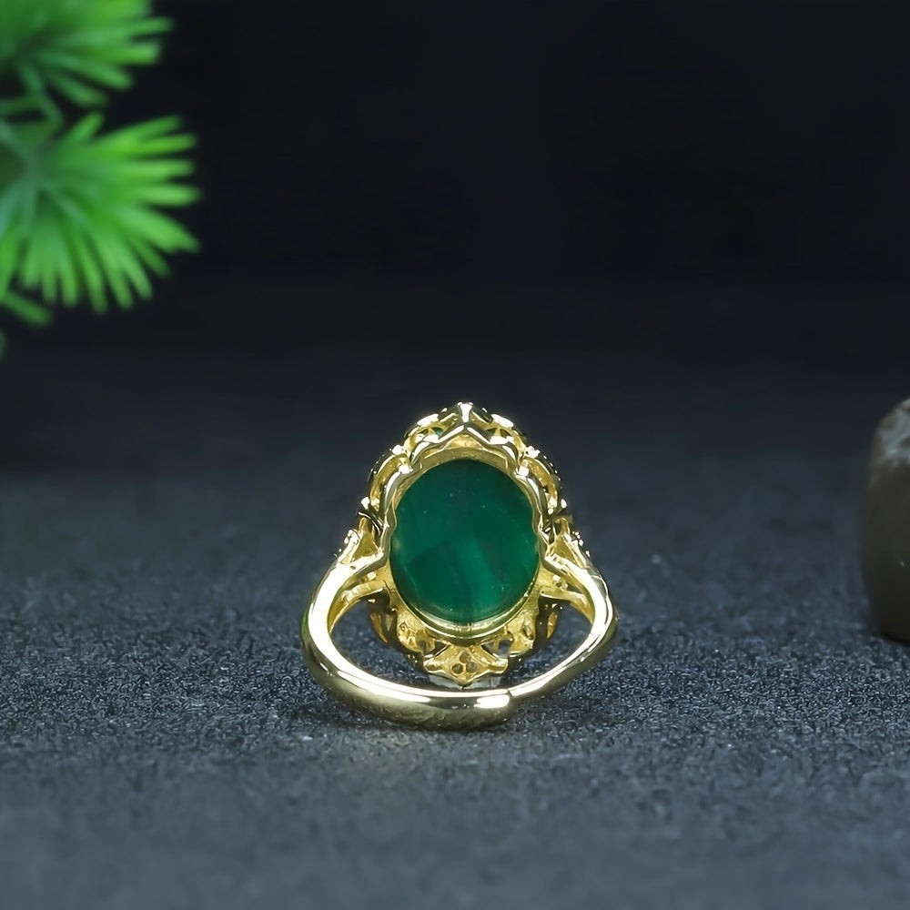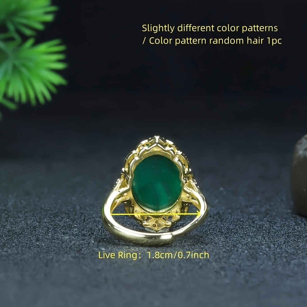 Embrace timeless elegance and profound energy with our Vintage Green Agate Ring. This exquisite piece features a stunning oval-cut natural green agate, bezel-set in an intricate, unplated gold-toned alloy. Its teardrop-inspired design and open, adjustable band create a versatile and comfortable piece of jewelry, perfect for enhancing your style, spiritual practice, or as a meaningful gift for a loved one.