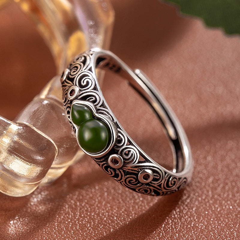 Summary: This ring combines authentic spiritual symbolism with elegant craftsmanship. The protective energies of the gourd and the life energy of jade create a powerful tool for attracting harmony and positive energy while supporting daily mindfulness and intention.