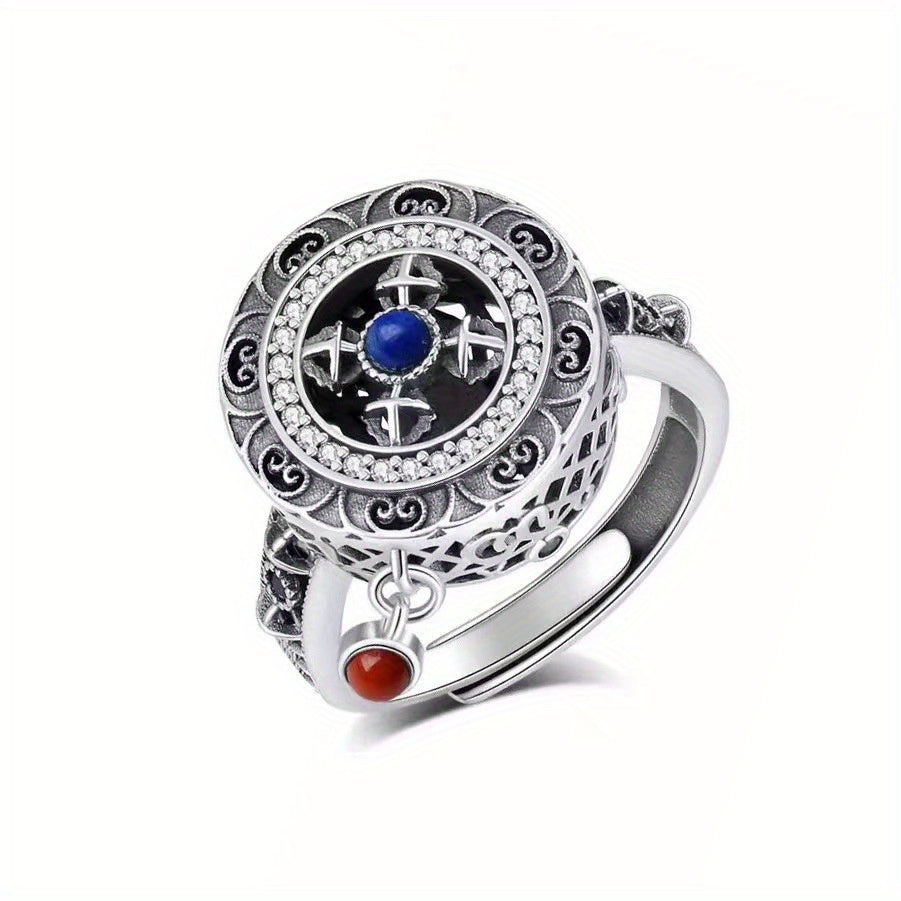 This vajra mantra ring features a rotatable design with intricate blue & red faux gemstones. The 18K gold plating adds a touch of luxury while the vintage-inspired craftsmanship creates an ethnic style perfect for daily wear or special occasions.