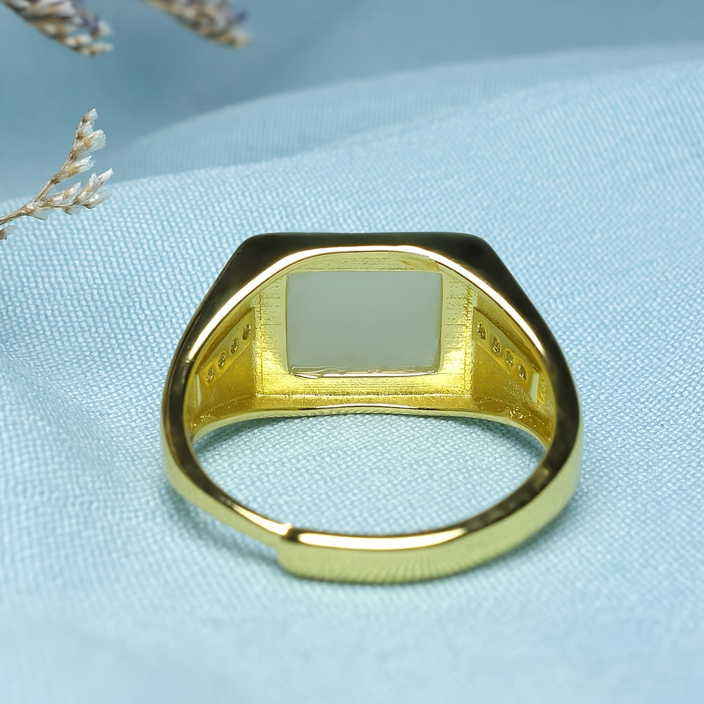 The golden accents represent warmth, connection, and enduring love, while the white stone symbolizes purity, clarity, and spiritual connection. The transparent gemstones add a touch of elegance and enhance the ring's spiritual energy, making it a powerful tool for attracting harmony, peace, and mindful connections.