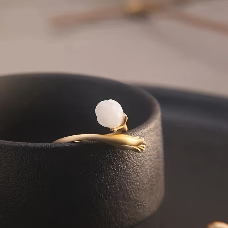 The ring's design captures the delicate yet resilient nature of the orchid, a flower admired worldwide. The smooth, warm luster of the Lamb Fat White stone evokes a sense of tranquility and wisdom. Perfect for daily wear or as a meaningful gift, this ring is a statement of sophisticated style and deep symbolic meaning, suitable for any occasion and any finger.