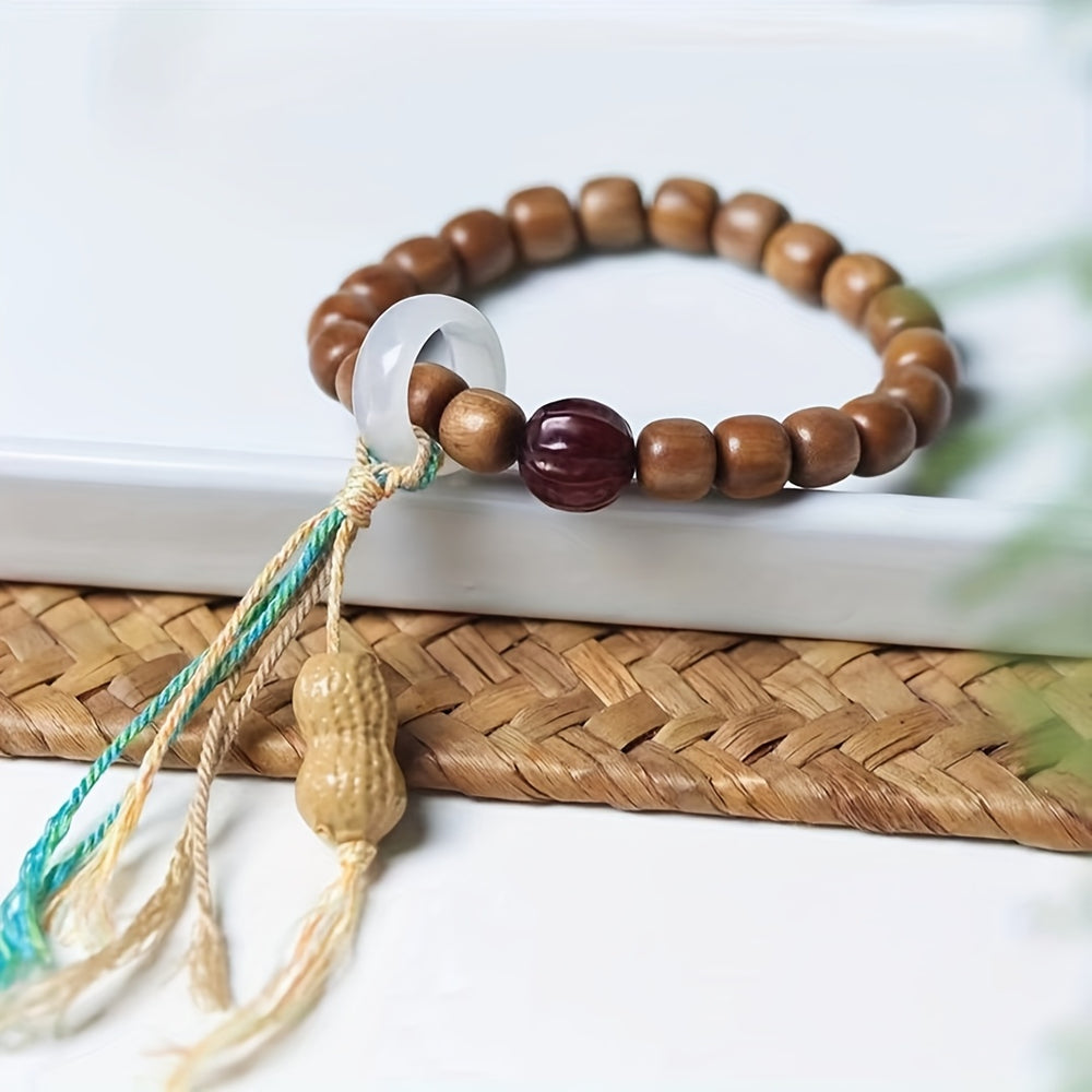 "The Vintage Sandalwood Beaded Bracelet is a stylish and meaningful accessory for any occasion, combining bohemian style with spiritual energy for a truly unique piece."