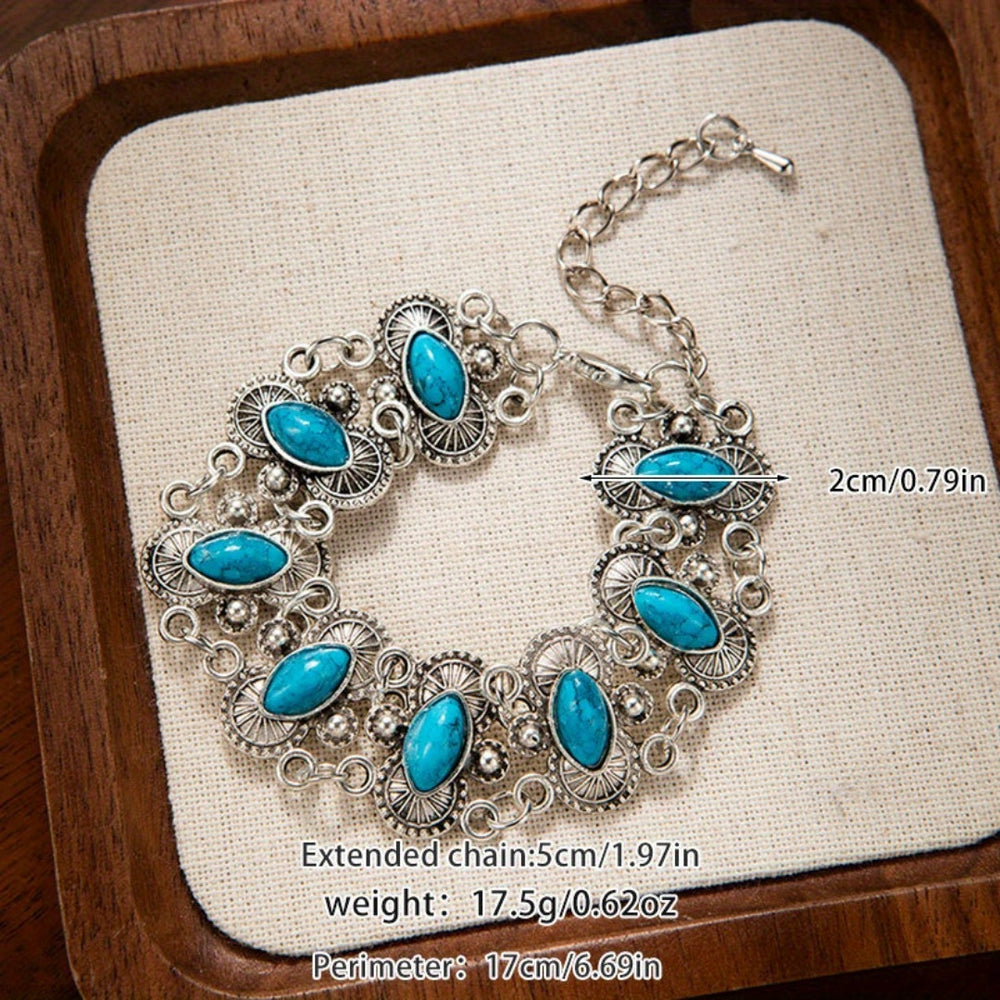“The elegant turquoise bracelet adds the perfect bohemian touch to any outfit, combining vibrant color with cultural symbolism for mindful energy flow.”